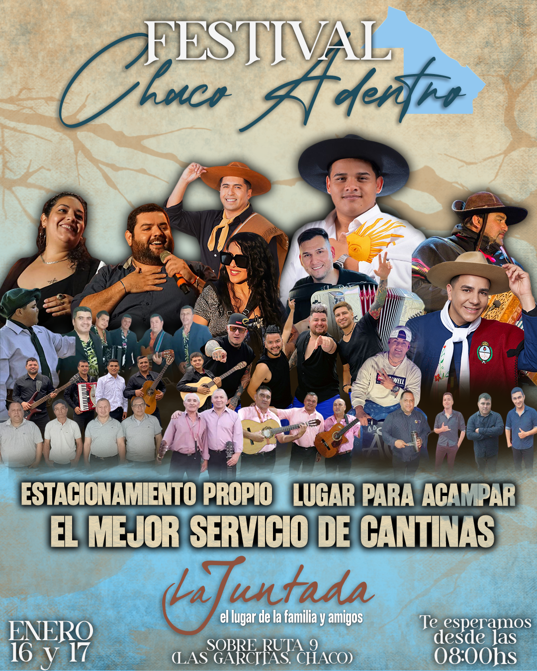 El festival Chaco Adentro se realizará el 16 y 17 de enero en el predio ¨La Juntada¨ ubicado sobre Ruta 9 entre Colonias unidas y Las Garcita.